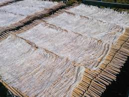 Rong tengusa thu hoạch từ các trại nuôi trồng được trải rộng trên bãi cát biển; phun nước nhiều lần, và phơi nắng trong 10 ngày, cho đến khi chuyển sang màu vàng nhạt. Sau đó ngâm rong nhạt màu này vào nước ngọt (sông, suối) để làm mềm rong, rồi quay trong cối nước (water mill) để loại tạp chất, tiếp theo là để nơi nước lưu thông để loại muối và khử sắc tố..